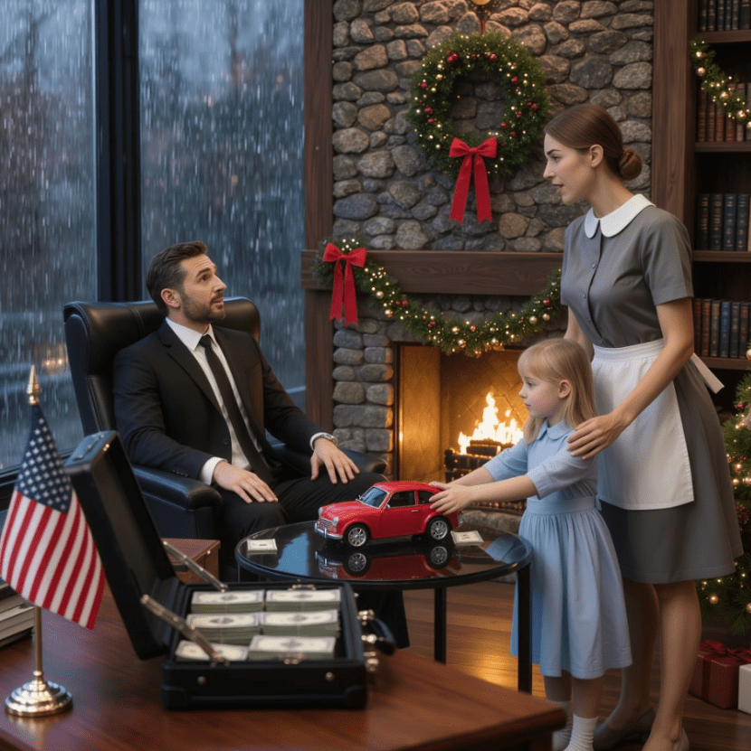 Deszcz bębnił o ogromne okna wykuszowe, gdy drzwi biblioteki uchyliły się cicho. Do środka weszła Elena – jego nowa gosposia. Była wdową od dwóch lat i samotnie wychowywała sześcioletnią córkę, Mię. Tego dnia szkoła była zamknięta z powodu burzy, więc nie miała wyboru – musiała zabrać dziecko ze sobą do pracy.