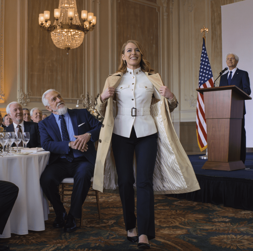 Żyrandole rzucały ciepłe, złote światło na salę balową, odbijając się od marmurowej posadzki i kryształowych kieliszków. Stałam przy wejściu, z trenczem luźno opadającym na buty, obserwując starannie wyreżyserowany przepych. Śmiechy, uprzejme rozmowy i wyuczone brawa wypełniały przestrzeń.