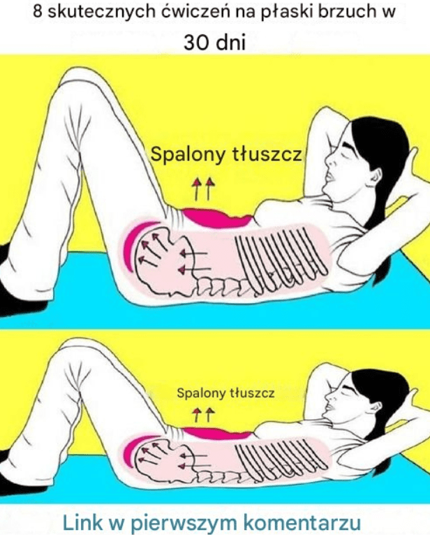 Poniżej znajdziesz zestaw ośmiu sprawdzonych ćwiczeń, które możesz wykonywać w domu, wykorzystując wyłącznie ciężar własnego ciała. Regularne wykonywanie tego treningu, najlepiej kilka razy w tygodniu, pozwala stopniowo wzmacniać mięśnie brzucha, poprawiać ich napięcie i dążyć do uzyskania płaskiego brzucha w ciągu 30 dni.