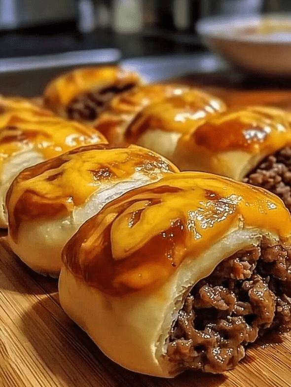 To ciasto jest przyjemnie elastyczne, łatwe do formowania i po upieczeniu pozostaje miękkie, dzięki czemu pirożki dobrze znoszą zarówno podanie prosto z pieca, jak i późniejsze odgrzewanie. Nadzienie mięsno-serowe daje wrażenie „komfortowego jedzenia”: jest aromatyczne, treściwe i kremowe, a cheddar dodaje charakterystycznej, lekko słonej nuty. Całość jest idealna do podania z miską zupy, chrupiącą sałatką, a nawet jako przekąska w podróży – złociste bułeczki świetnie smakują także na ciepło po krótkim odgrzaniu.