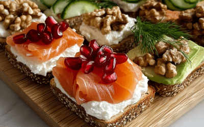 Talerz tostów z łososiem, serkiem śmietankowym, granatem i orzechami włoskimi to propozycja, która łączy prostotę przygotowania z efektownym wyglądem i…