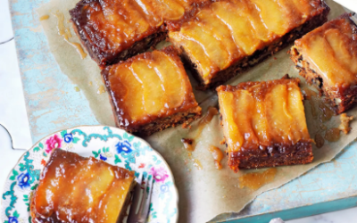 Wegańskie ciasto toffi z jabłkami do góry nogami