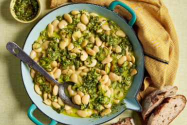 Kremowa cukinia z parmezanem i fasolka maślana z pesto pistacjowym