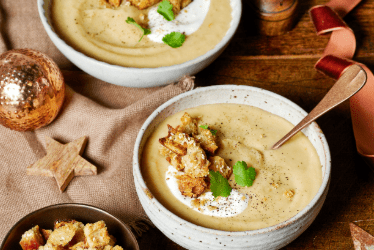 Zupa z pasternaku i miso z chrupiącymi grzankami sezamowymi