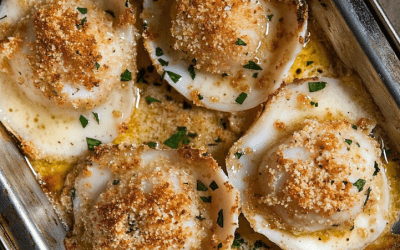 Przegrzebki zapiekane z masłem czosnkowym – szybki przepis