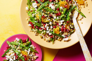 Sałatka z kuskusem olbrzymim, pomarańczą i fetą