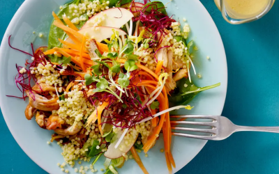 Sałatka z prosa z kurczakiem i dressingiem miodowo-musztardowym