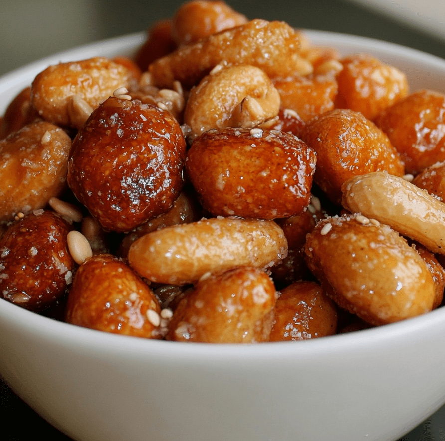 - 🌰 Dodaj nasiona sezamu: Posyp mieszankę sezamem i mieszaj przez około 1 minutę. Nasiona powinny dobrze przywrzeć do miodowej warstwy i delikatnie się uprażyć, wzbogacając smak oraz teksturę.