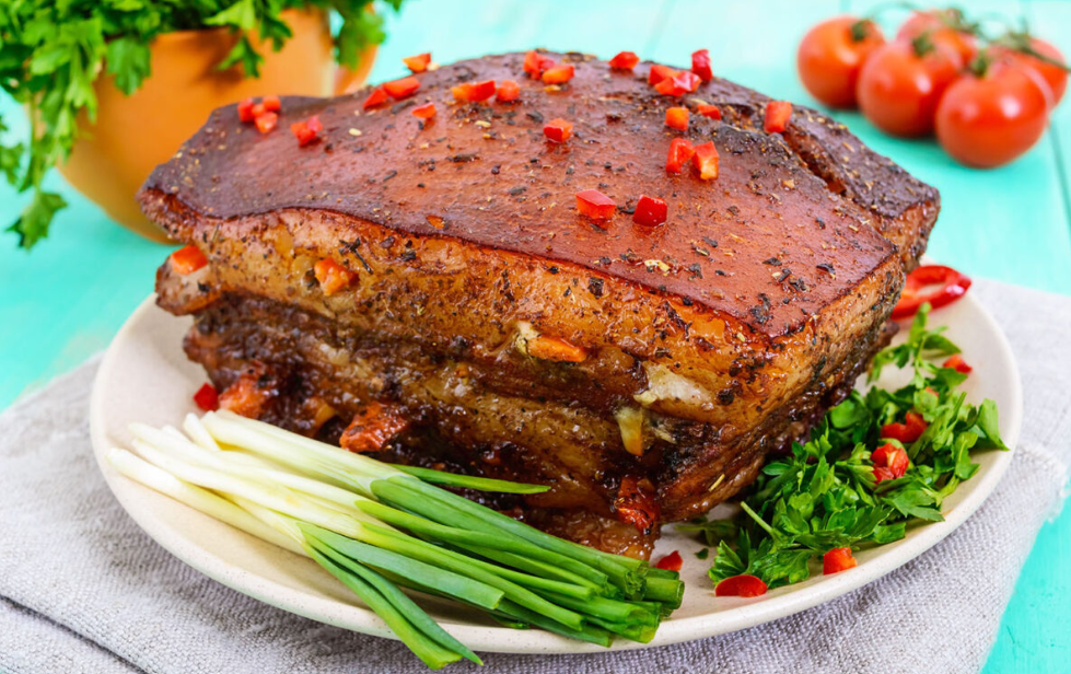 Chrupiący boczek wieprzowy w ziołowej panierce to danie, które łączy w sobie długie, powolne pieczenie z intensywnym aromatem świeżych ziół i czosnku. Dzięki odpowiedniej technice przygotowania mięso pozostaje soczyste i miękkie, a skórka oraz panierka nabierają apetycznej chrupkości. To propozycja idealna zarówno na rodzinny obiad, jak i na bardziej uroczystą kolację.