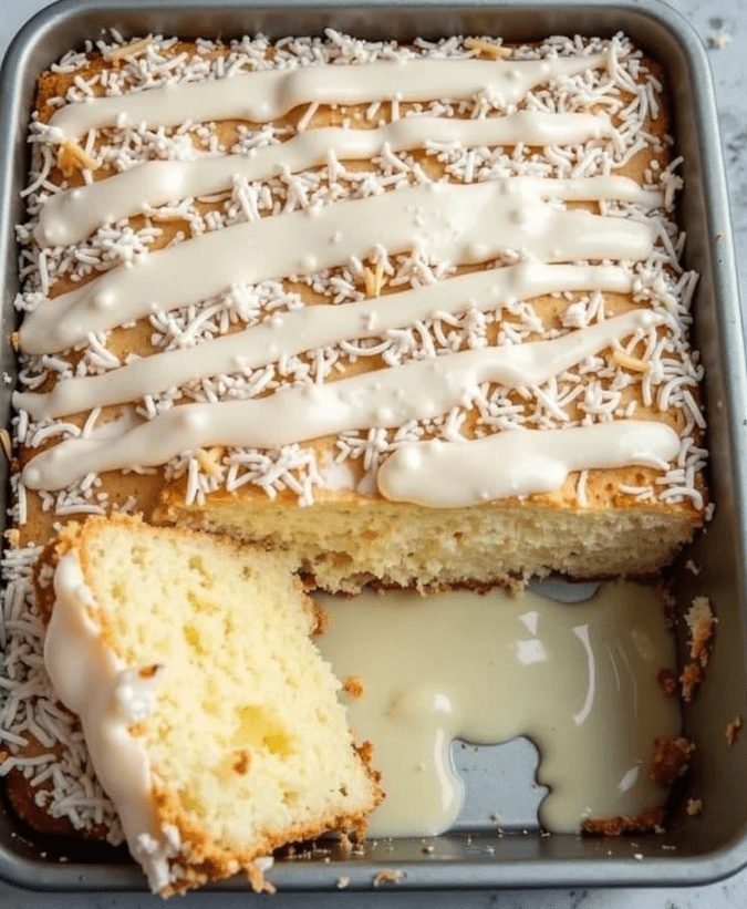 Ciasto kokosowe z lodami to niezwykle prosty, a jednocześnie wyjątkowo efektowny deser, który zachwyca swoją wilgotnością i intensywnym kokosowym aromatem. Dzięki specjalnemu syropowi na bazie mleka kokosowego oraz mleka skondensowanego, ciasto po upieczeniu zostaje dokładnie nasączone, stając się miękkie, delikatne i niemal rozpływające się w ustach.