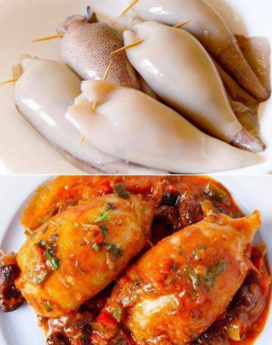 Aby uzyskać najlepszy efekt, wybierz bardzo świeże kalmary. Powinny mieć jasne, sprężyste mięso i delikatny morski zapach. Podczas czyszczenia zachowaj szczególną ostrożność, aby nie uszkodzić korpusu – to on będzie wypełniany farszem. Ważne jest również, aby nie przeładować kalmarów nadzieniem, ponieważ podczas gotowania farsz może wypłynąć.