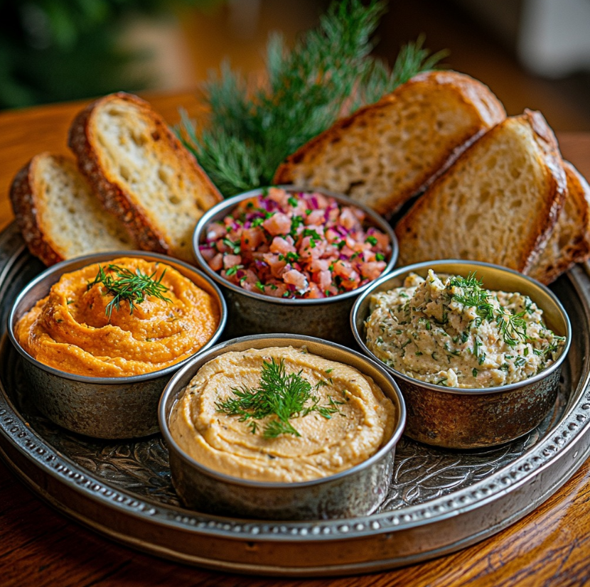 Domowy zestaw dipów z chrupiącymi tostami to doskonała propozycja na spotkanie z rodziną lub przyjaciółmi, kolację w stylu tapas albo elegancką przekąskę na weekend. Cztery różne smaki – od klasycznego hummusu, przez wersję z pieczoną marchewką, aż po rybne pasty – sprawiają, że każdy znajdzie coś dla siebie. Całość prezentuje się efektownie, a jednocześnie opiera się na prostych, łatwo dostępnych składnikach.