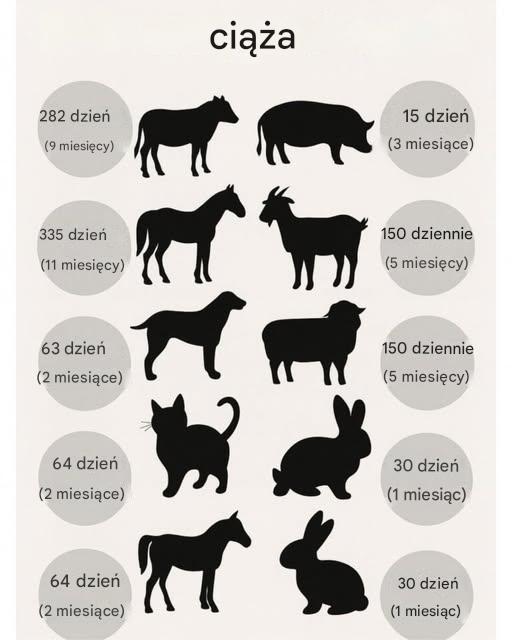 Czas trwania ciąży u wybranych zwierząt