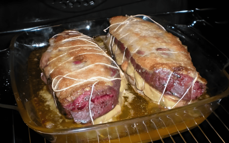 Wstaw naczynie do nagrzanego piekarnika i piecz przez 15 minut w 200°C. Po tym czasie obniż temperaturę do 165°C i piecz jeszcze 10 minut, aby mięso pozostało delikatne i różowe w środku. Po wyjęciu pozostaw je do odpoczynku – pozwoli to zachować soczystość i równomiernie rozprowadzić soki.