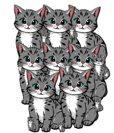 Przyjrzyj się bardzo uważnie obrazkowi. Ile kotów widzisz w sumie? Pamiętaj — nie wszystkie są oczywiste. Niektóre są duże i łatwe do zauważenia, inne natomiast bardzo małe i sprytnie ukryte między dużymi sylwetkami lub tuż przed nimi.