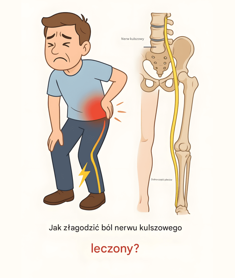 Rwa kulszowa, czyli ból nerwu kulszowego, jest jedną z najczęstszych przyczyn bólu dolnej części pleców promieniującego do pośladków, ud i nóg. Nerw kulszowy to najdłuższy i jeden z najważniejszych nerwów w ludzkim ciele – biegnie od dolnego odcinka kręgosłupa aż do stóp. Gdy zostaje podrażniony lub uciśnięty, może powodować ból o różnym nasileniu: od lekkiego dyskomfortu, przez pieczenie i mrowienie, aż po silny, kłujący ból utrudniający chodzenie, siedzenie i sen.