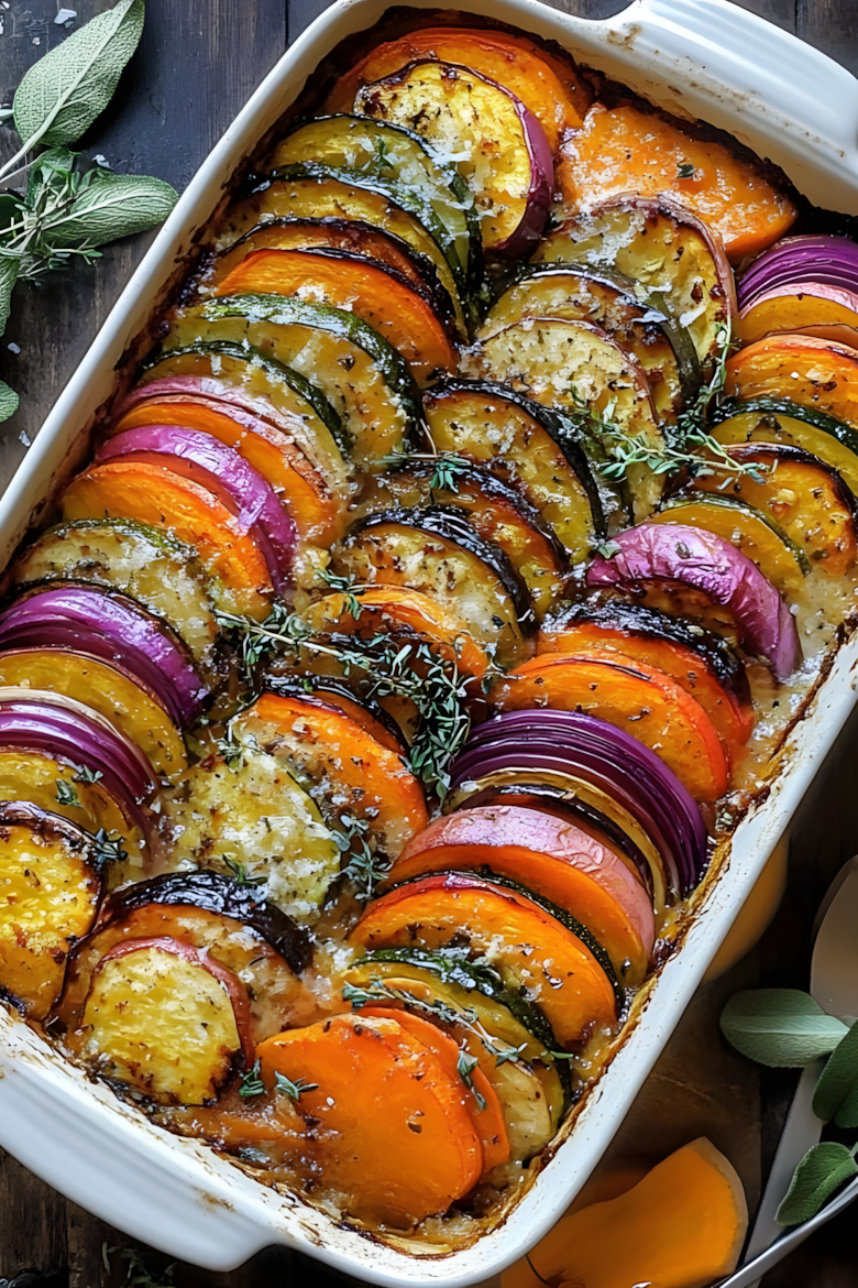 Pieczone ratatouille to jedno z tych dań, które idealnie oddają smak jesieni. Kolorowe warzywa, aromatyczne zioła i delikatna nuta czosnku tworzą razem harmonijną, rozgrzewającą kompozycję. To potrawa prosta, a jednocześnie niezwykle efektowna – zarówno wizualnie, jak i smakowo.