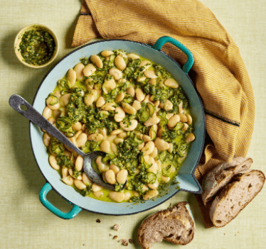 Kremowa, serowa fasolka z delikatną cukinią i aromatycznym pesto pistacjowym to danie, które łączy w sobie prostotę składników z wyjątkową głębią smaku. Jest sycące, pożywne i jednocześnie niezwykle pocieszające – idealne zarówno na szybki obiad, jak i spokojną kolację. Najlepiej smakuje podane z chrupiącym chlebem na zakwasie, który doskonale zbiera kremowy sos z talerza.