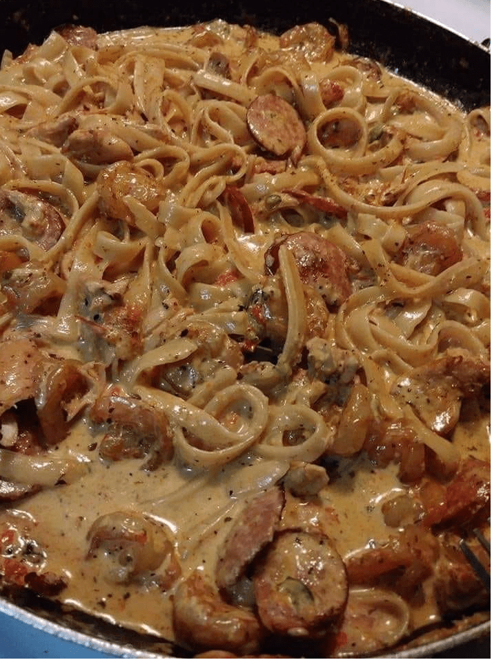 Pasta cajun z krewetkami i kiełbasą to danie, które zachwyca bogactwem smaków, kremową konsystencją i delikatną pikantnością charakterystyczną dla kuchni południowych Stanów Zjednoczonych. Połączenie soczystych krewetek, podsmażonej andouille lub wędzonej kiełbasy, świeżych warzyw oraz aksamitnego sosu śmietanowo-pomidorowego tworzy niezwykle sycący i aromatyczny posiłek.
