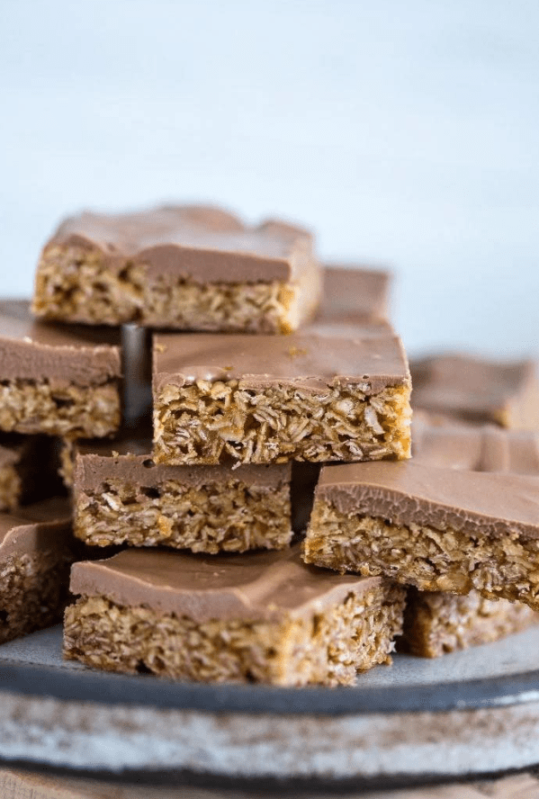To mój prawdziwy faworyt. Superłatwe w przygotowaniu i równie łatwe do pokochania! Owsiane kwadraciki z nugatem to raczej przekąska, którą mogę jeść na każdą okazję. Jeśli wolisz wersję bezglutenową, możesz użyć bezglutenowej owsianki.