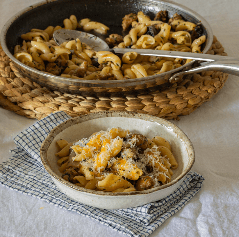 Makaron z włoską kiełbasą i radicchio to danie, które doskonale pokazuje, jak niewiele potrzeba, aby stworzyć coś naprawdę wyrazistego i satysfakcjonującego. Jesteśmy wielkimi fanami radicchio – jego lekka goryczka po krótkim podsmażeniu łagodnieje, nabiera głębi i staje się niezwykle przyjemna w smaku. W połączeniu z aromatyczną kiełbasą i dobrym makaronem tworzy kompozycję, do której chce się wracać.