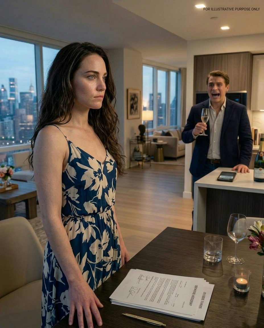 Kiedy wszedłem do mieszkania, wszystko było dokładnie tak, jak powiedział. Papiery leżały schludnie na stole w jadalni obok srebrnego długopisu. Ryan stał przy kuchennej wyspie, ubrany w marynarkę, którą nosił, gdy chciał wyglądać na ważnego. Butelka szampana stała nieopodal.
