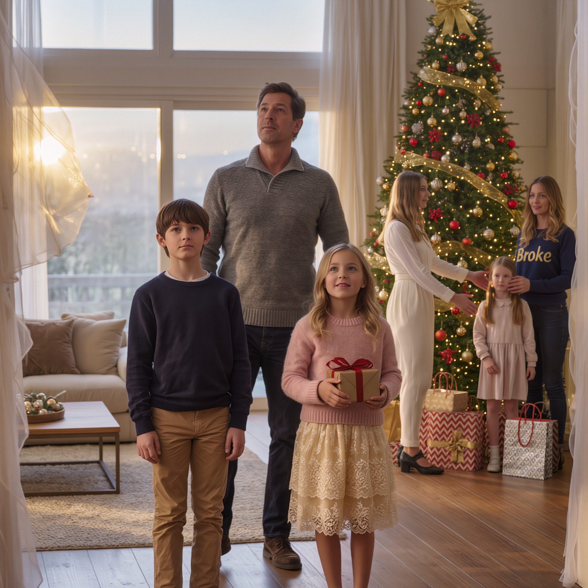 Mój tata powiedział: „Nie stać nas na święta w tym roku. Niech wasze dzieci będą proste”. Uwierzyłem mu. Potem otworzyłem mu oczy. Nowe telefony, designerskie pudełka i cała choinka prezentów dla dzieci mojej siostry. Córka zapytała cicho: „Czy zrobiliśmy coś źle?”. Odłożyłem spłatę za samochód i wysłałem SMS-a: „Już nie”. O 9:00 rano mama pukała do moich drzwi z płaczem.