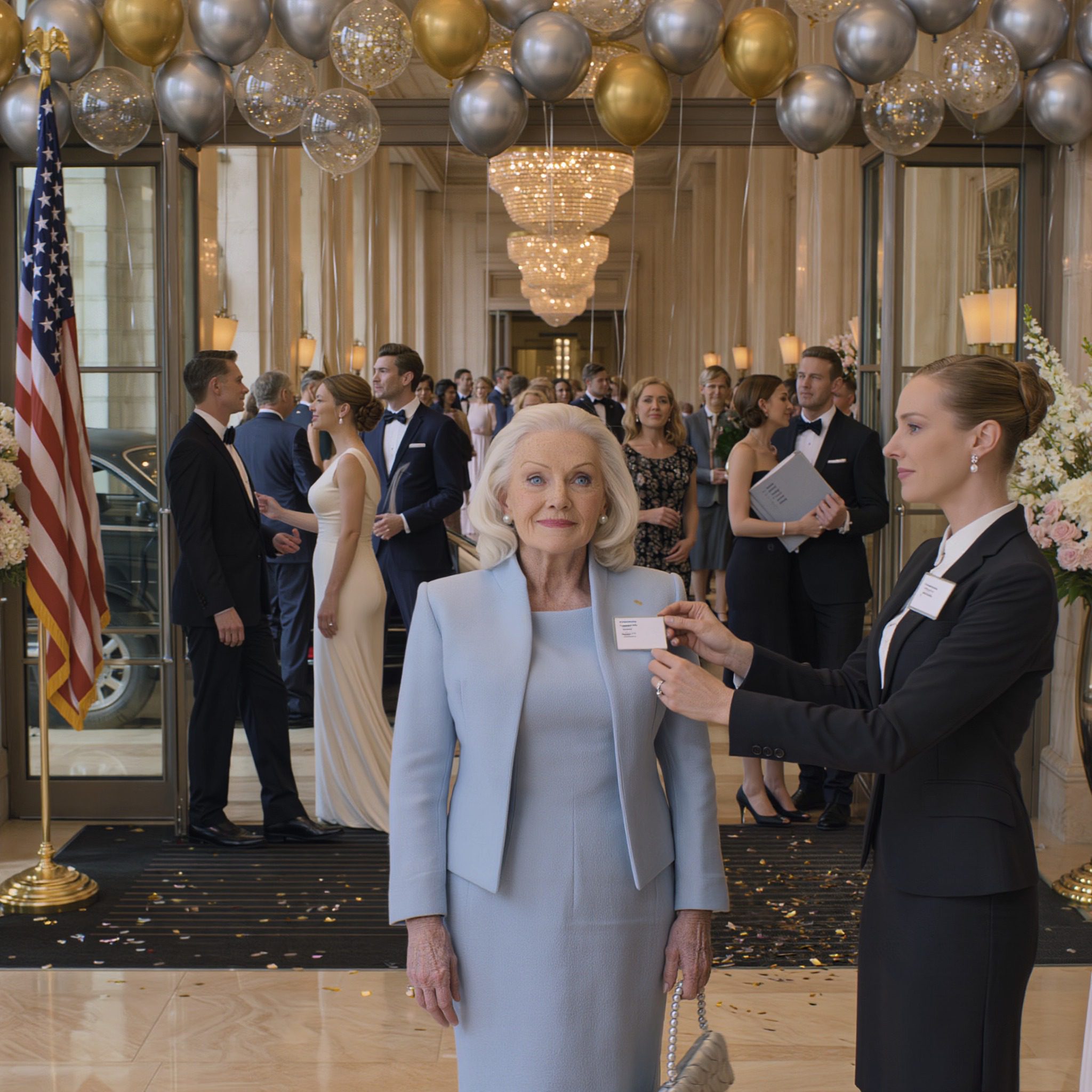 Podniosłem go, spodziewając się, że zobaczę swoje imię i nazwisko elegancko wydrukowane. Zamiast tego, pospiesznie napisanym pismem, widniał napis: „Nieobecna starsza pani”. Palce mi drżały, gdy trzymałem identyfikator.