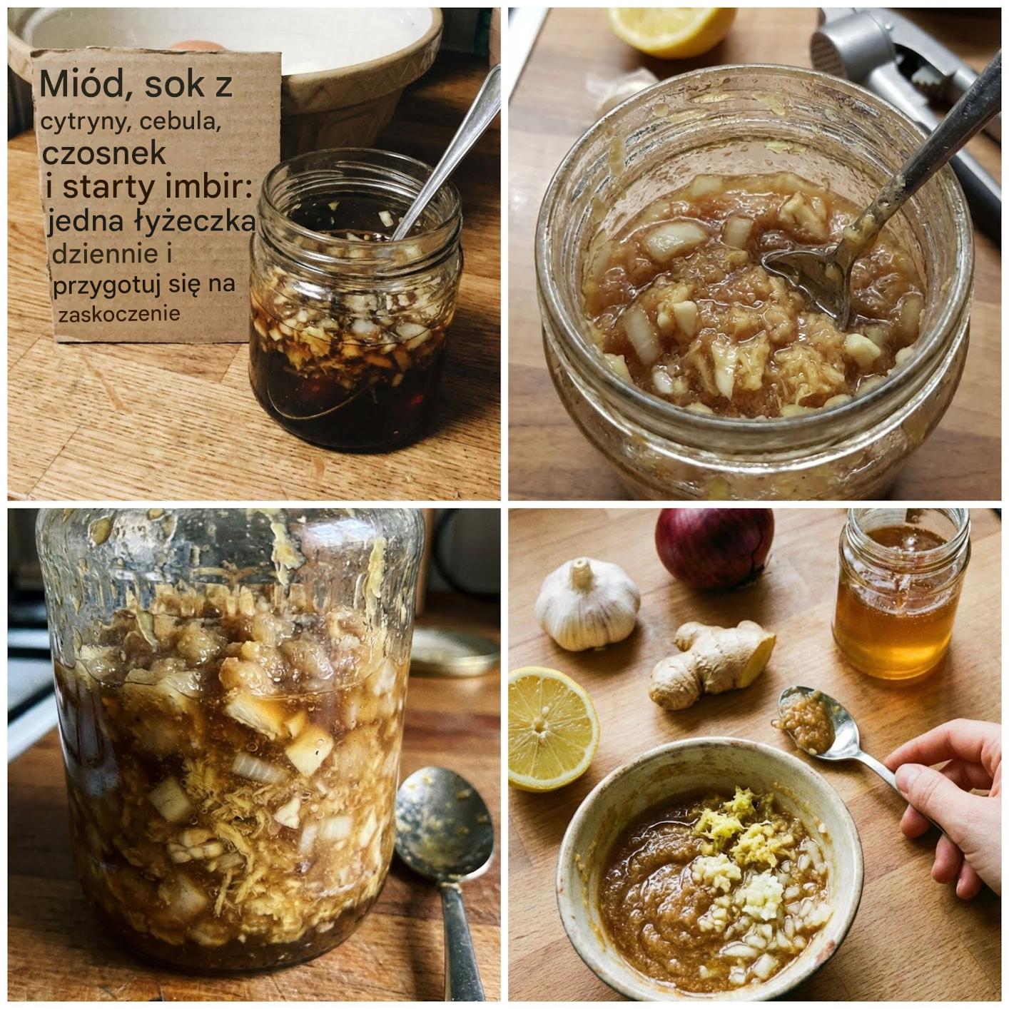 Mieszanka ta jest ceniona za swoją prostotę oraz łatwą dostępność składników, które często mamy już w kuchni. Dzięki zawartości naturalnych przeciwutleniaczy i związków o działaniu przeciwzapalnym, może wspierać organizm w okresach zwiększonego ryzyka infekcji, pomagać w utrzymaniu prawidłowego trawienia oraz wspierać naturalne mechanizmy obronne organizmu. To rozwiązanie dla osób, które chcą zadbać o zdrowie w sposób świadomy i możliwie jak najbardziej naturalny.