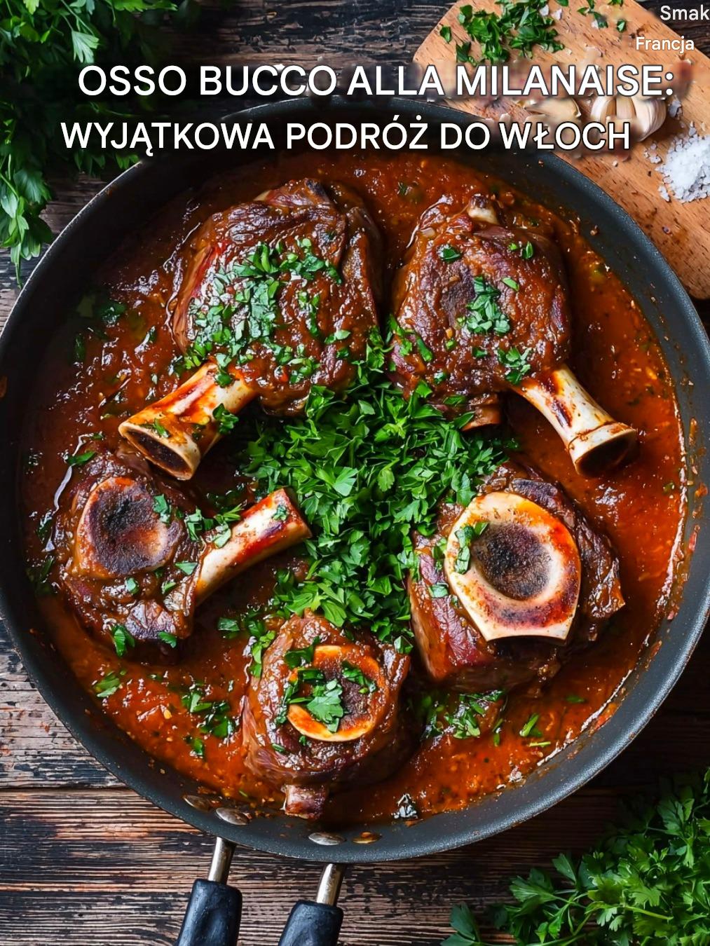 Osso Buco alla Milanese to jedno z najbardziej charakterystycznych i eleganckich dań kuchni włoskiej, wywodzące się z Mediolanu, serca regionu Lombardia. Jego nazwa oznacza dosłownie „kość z dziurą” i odnosi się do golonki cielęcej krojonej w plastry, z widocznym szpikiem kostnym, który podczas długiego gotowania nadaje potrawie niezwykłą głębię smaku.