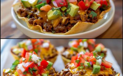 Babeczki taco Składniki: 1 funt mielonej wołowiny, 1 opakowanie przyprawy do taco, 1 szklanka startego sera cheddar , 1 szklanka…