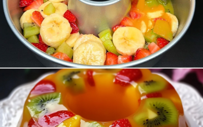Ten warstwowy deser z galaretką pomarańczową i świeżymi owocami to lekki, orzeźwiający przysmak, który wygląda jak z witryny cukierni, a…