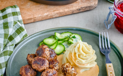 To chyba najbardziej klasyczna domowa kuchnia, jaką mamy! Klopsiki z puree, surowa brusznica, marynowany ogórek i sos śmietanowy (albo brązowy…