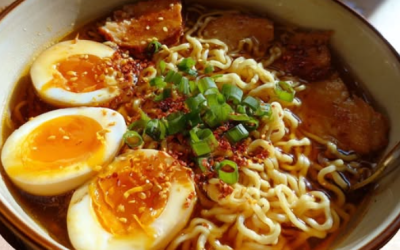 Składniki 200 g makaronu ramen 1 l bulionu drobiowego lub warzywnego 2 jajka 200 g piersi z kurczaka lub wieprzowiny…