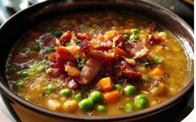 Grochówka Wojskowa z Boczkiem 🥣 Grochówka wojskowa to jedna z najbardziej kultowych, sycących i rozgrzewających zup. Gęsta, treściwa, pachnąca majerankiem…