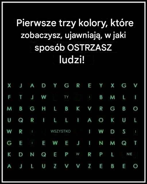 Pierwsze trzy nazwy kolorów, które zobaczysz (np. CZERWONY, NIEBIESKI, SZARY, FIOLETOWY ) to Twoje wyniki.