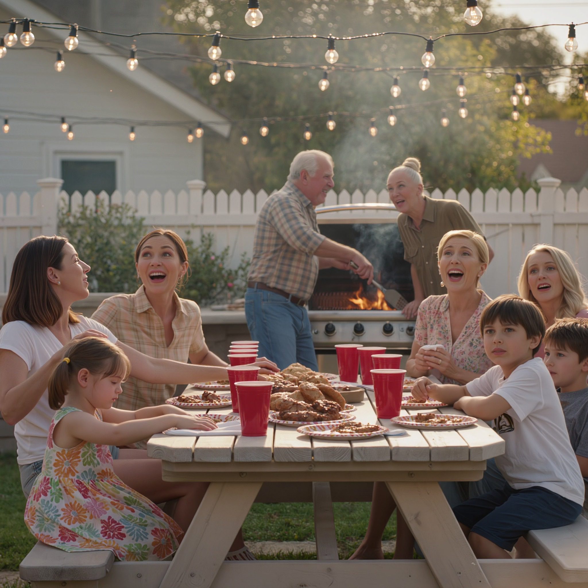 Dym z grilla unosił się nad podwórkiem moich rodziców, podczas gdy Emma siedziała obok mnie i ostrożnie kroiła hamburgera na precyzyjne kostki.