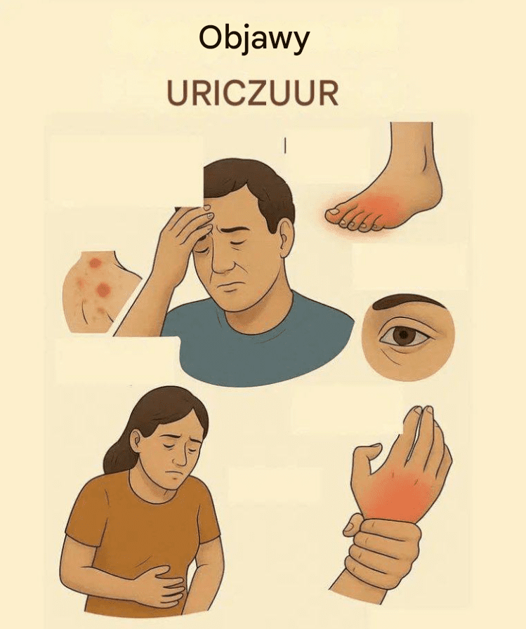 Wysoki poziom kwasu moczowego bywa związany z takimi objawami jak stany zapalne stawów, ból i obrzęk, uczucie gorąca, a w bardziej zaawansowanych przypadkach także pęknięcia skóry, erozja kości czy zapalenie tkanki łącznej w obrębie tkanek miękkich. Dolegliwości te mogą znacząco obniżać komfort życia i utrudniać codzienne funkcjonowanie.