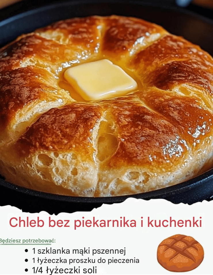 Chleb na patelni to jeden z tych przepisów, które każdy może wykonać, nawet jeśli nie ma doświadczenia w pieczeniu. Szybki w przygotowaniu, pachnący masłem i o pięknej złocistej skórce, ten chleb jest idealnym rozwiązaniem, gdy brakuje Ci czasu, ale chcesz cieszyć się świeżym, domowym wypiekiem. Wystarczy kilka składników i dosłownie kilka minut, by przygotować pyszny, puszysty chleb, który doskonale sprawdzi się jako dodatek do obiadu, kolacji lub po prostu jako przekąska.