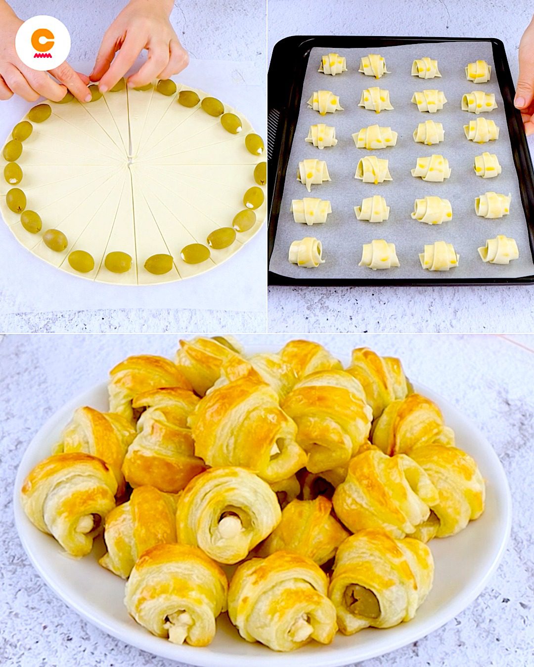 Przygotowanie rogalików z ciasta francuskiego z oliwkami
