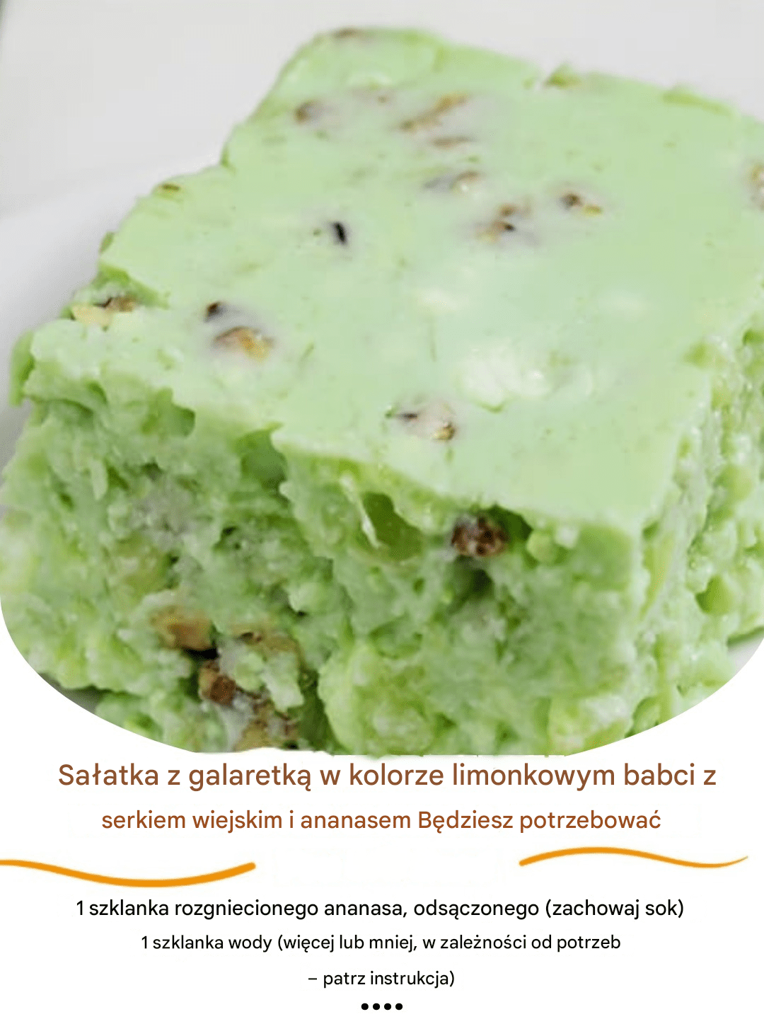 Jedna łyżka tej sałatki potrafi przenieść wprost do kuchni babci. Połączenie galaretki limonkowej, ananasa i delikatnej, kremowej warstwy przywołuje wspomnienia rodzinnych spotkań, prostych deserów i domowej atmosfery.