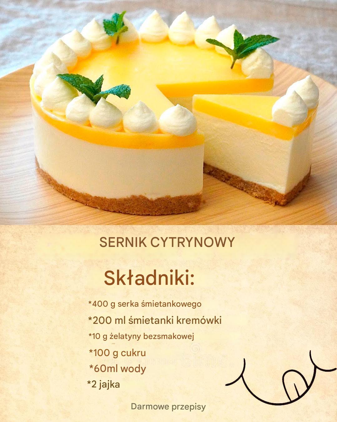 Sernik cytrynowy to idealna propozycja dla miłośników lekkich, kremowych deserów z wyraźną nutą świeżości. Połączenie delikatnego, aksamitnego nadzienia serowego z intensywnym, lekko kwaskowym kremem cytrynowym sprawia, że deser jest doskonale zbalansowany – słodki, ale jednocześnie orzeźwiający. To doskonały wybór na ciepłe dni, rodzinne spotkania, uroczystości lub wtedy, gdy masz ochotę na coś wyjątkowego, a jednocześnie niezbyt ciężkiego.