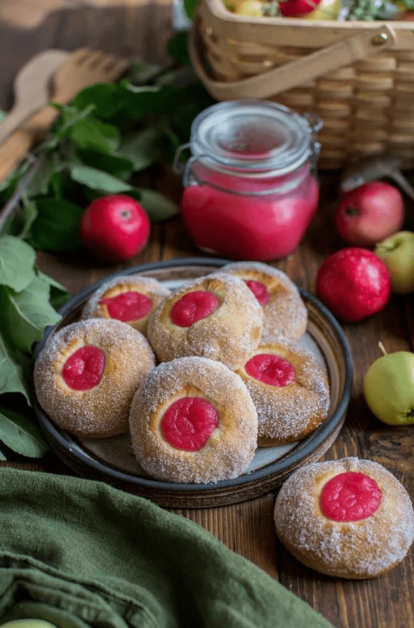 Oczywiście, jeśli nie chcesz, aby bułeczki były różowe, możesz je również wypełnić zwykłym musem jabłkowym!