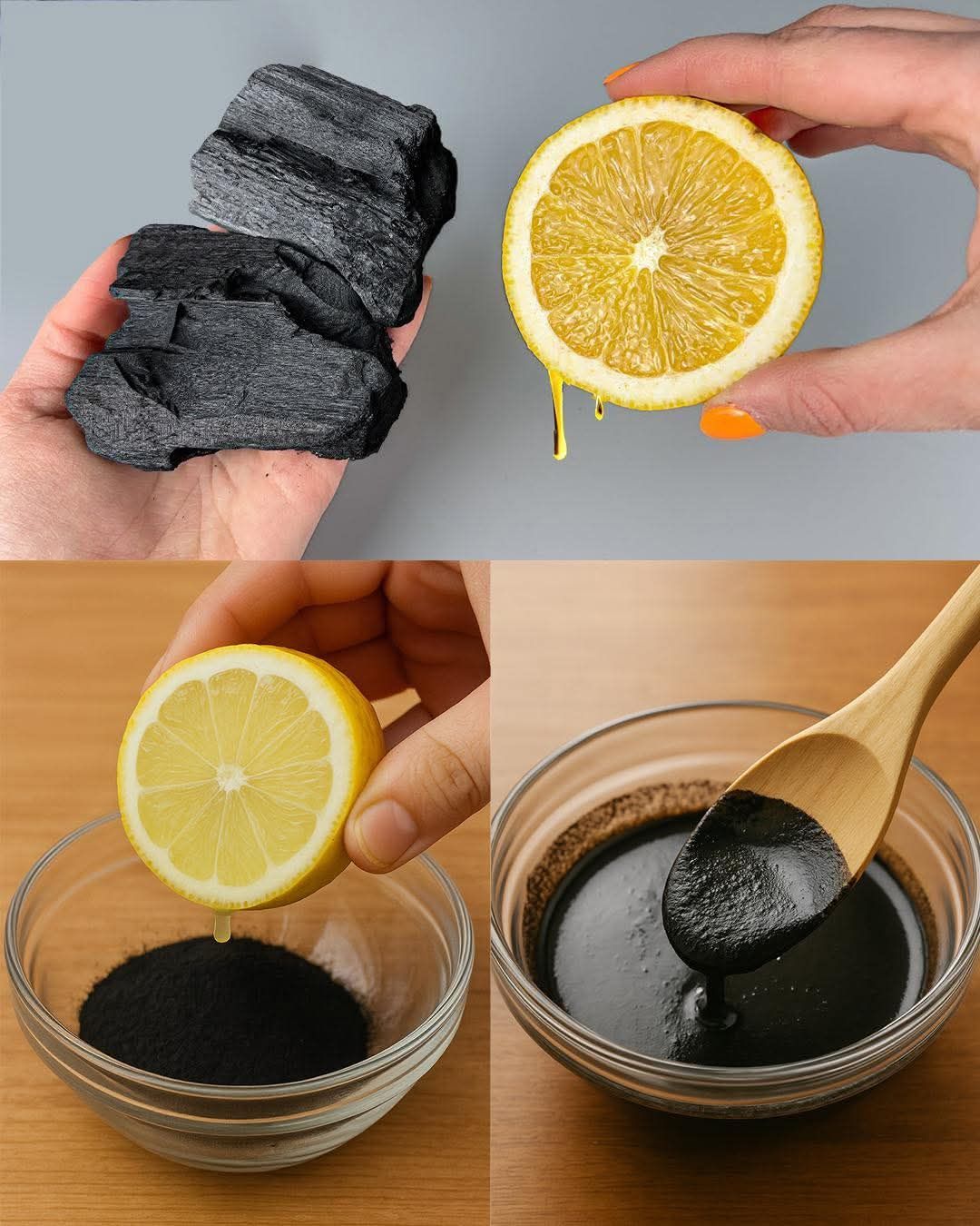 - Wymieszaj 1 łyżeczkę węgla aktywowanego z niewielką ilością soku z cytryny, aż powstanie gładka pasta.