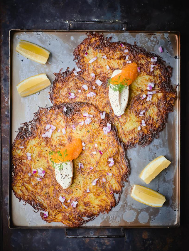 Surowy stek ziemniaczany w cieście, podany z ikrą i czerwoną cebulą, sprawdza się zarówno jako wyrafinowana przystawka, jak i sycące danie główne. Jeśli chcesz podać go gościom na początek kolacji – świetnie. Jeśli jednak masz ochotę zjeść go samodzielnie, bez dodatków, również spełni swoją rolę. To danie proste w formie, ale bogate w smak i teksturę.