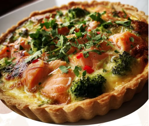 Tarta z łososiem i brokułami – domowy klasyk na ciepło i zimno 🥧