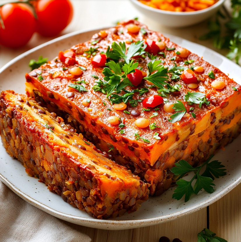 Terrina z czerwonej soczewicy, warzyw i pietruszki to doskonała propozycja dla osób szukających pożywnego, roślinnego dania, które sprawdzi się zarówno na ciepło, jak i na zimno. Jest sycąca, aromatyczna i bogata w białko roślinne, a jednocześnie lekka i pełna warzyw. Dzięki połączeniu dwóch rodzajów soczewicy terrina ma ciekawą strukturę – kremową bazę przełamaną delikatnymi kawałkami warzyw.