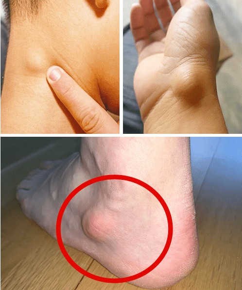 - Widoczny guzek, miękki lub twardy – w zależności od ilości płynu.
