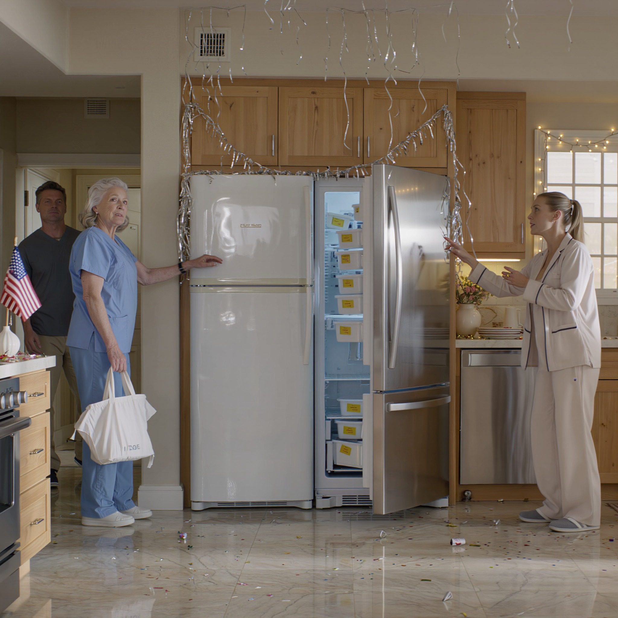 Wróciłam do domu po 26-godzinnej zmianie pielęgniarskiej i znalazłam drugą lodówkę w kuchni. Moja synowa powiedziała: „To moje. Od teraz kupuj sobie jedzenie”. Oznaczyła wszystko, co kupiłam, swoim imieniem… Więc przygotowałam niespodziankę…