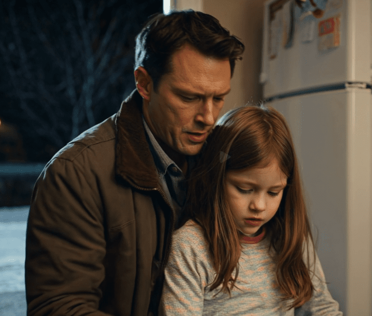 „Tato!” podskoczyła, a Harvey złapał ją w ramiona i podniósł, jakby nic nie ważyła.
